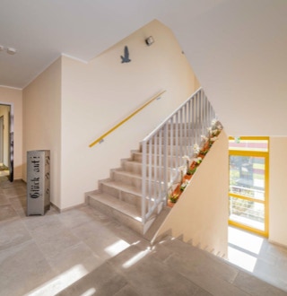 Das komfortable und modern eingerichtete Apartment mit Küche und Doppelbett und Schlafsofa im Wohnbereich verfügt über ein angenehmes LED-Leuchtkonzept. Das geräumige Bad ist mit flacher Dusche (Glasduschwände), Handtuchheizkörper, großen Waschtisch und Fön ausgestattet. Mit dem Fahrstuhl gelangen Sie barrierefrei vom Parkplatz (direkt am Hostel) bis zu Ihrem Apartment mit sonnigem Balkon.